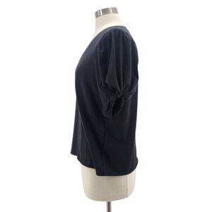 This elegant black V-neck top is perfect for any occasion. Its stylish design and comfortable fit make it a must-have in your wardrobe.