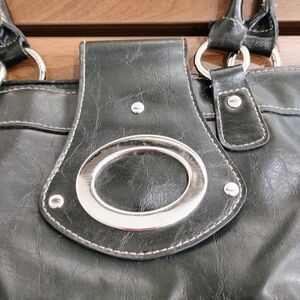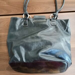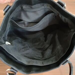 This elegant black leather tote bag is perfect for any occasion. Its sleek design and durable material make it a must-have accessory. The stylish black color complements any outfit.