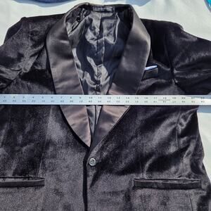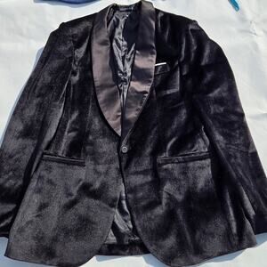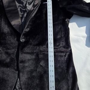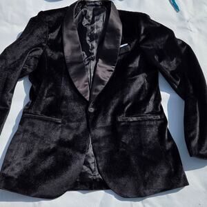 This sophisticated black velvet blazer is perfect for any formal occasion. Its sleek design and luxurious fabric make it a standout piece in any wardrobe.