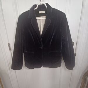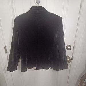 Keywords: velvet blazer, black jacket, formal wear, evening attire, women's blazer, classic jacket, cocktail party outfit, elegant outerwear, holiday fashion, luxury clothing