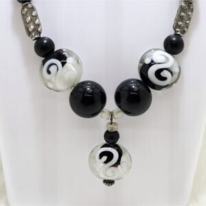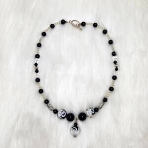 Elegant Black, White & Silver Glass Beaded Necklace - Timeless Sophistication