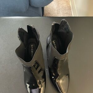 Step out in style with these sleek black ankle boots. Perfect for any occasion, these boots offer both comfort and elegance size 9W with 4 inch heel very dressy