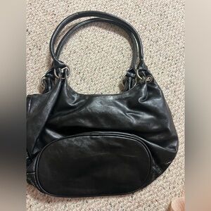 This stylish black handbag is perfect for any occasion. Its sleek design and versatile color make it a must-have accessory.