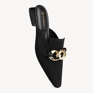 Step out in style with these elegant black mules featuring a striking gold accent. Perfect for any occasion, these shoes offer both comfort and sophistication.