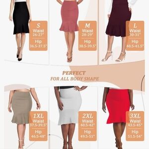 FEATURES: High waist, slim fit, fishtail details, mid-length, good elasticity.Perfect for women and girls, this pencil skirt features a mermaid hem that hugs your curves, and a ruffled midi skirt that's fitted for a slim fit for an elegant, feminine look.