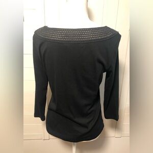 This elegant black top features a stylish neckline, perfect for any occasion. Its classic design makes it a versatile addition to your wardrobe.