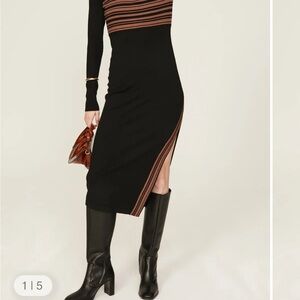 Elegant Black and Brown Striped Dress