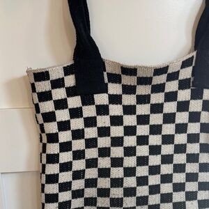 Elevate your style with this elegant black and cream checkered tote. Perfect for any occasion, this bag combines fashion and functionality.