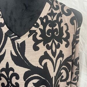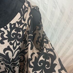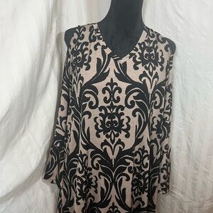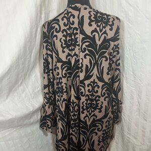 This elegant blouse features a striking black pattern on a cream background, perfect for any occasion. Its stylish design offers both comfort and sophistication.