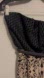 This elegant strapless dress features a chic black bodice paired with a stylish cream patterned skirt. Perfect for any occasion, this dress offers a sophisticated look with its classic color combination.