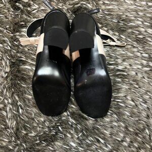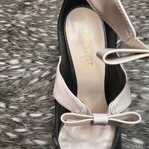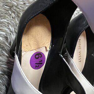 Step out in style with these elegant black and cream Nine West heels (zip on heel). Perfect for any occasion, these shoes offer both comfort and sophistication.