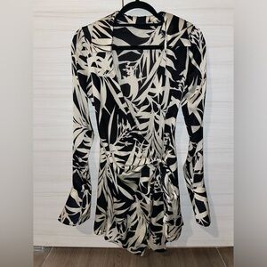 This elegant women's romper features a striking black and cream pattern, perfect for any occasion. The sophisticated design offers a flattering fit and timeless style.