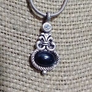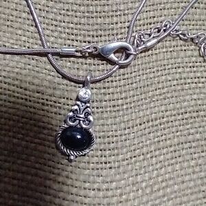 Elegant Black and Crystal Silvertone Pendant Necklace vintage