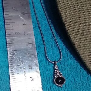 This elegant black pendant necklace adds a touch of sophistication to any outfit. Perfect for any occasion.