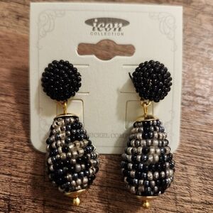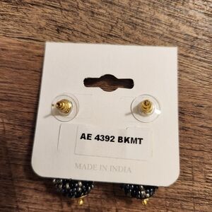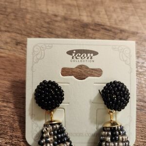 These stunning black and gold beaded earrings add a touch of elegance to any outfit. Perfect for any occasion. 2 inches