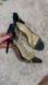 Step out in style with these elegant black heels featuring chic gold chain straps. Perfect for any occasion, these shoes add a touch of sophistication to your outfit.