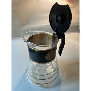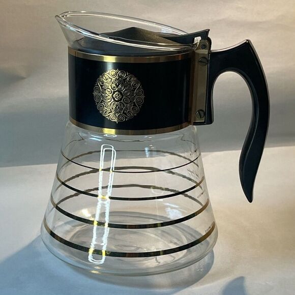 Enhance your coffee experience with this elegant black and gold coffee carafe. Its sleek design and premium materials make it a perfect addition to any kitchen.