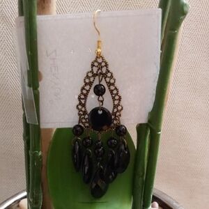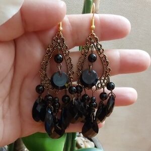 These stunning black and gold dangle earrings add a touch of elegance to any outfit. Perfect for any occasion.