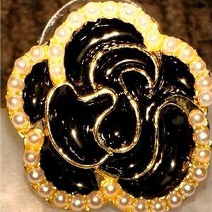 These stunning black and gold floral earrings add a touch of elegance to any outfit. Perfect for any occasion.