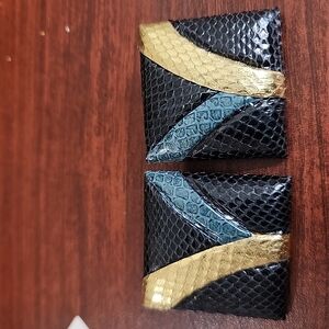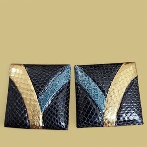 Womens 80's Vintage Leather Large Square Clip On Earrings