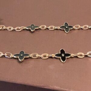 This elegant black and gold necklace adds a touch of sophistication to any outfit. Perfect for both casual and formal occasions.