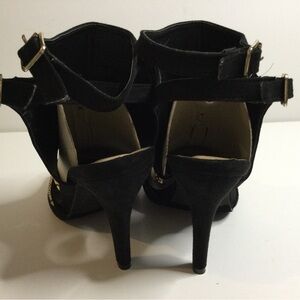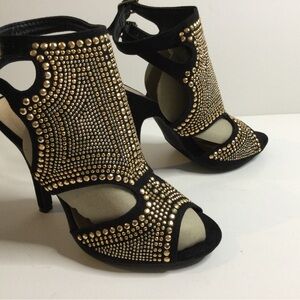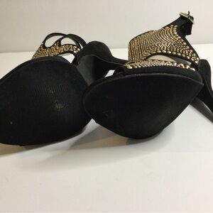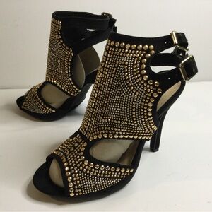 Step out in style with these elegant black and gold studded women's shoes. Perfect for any occasion, these shoes offer a chic and sophisticated look.