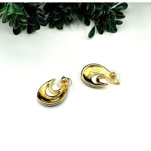 Sophisticated earrings featuring a dynamic two-tone design with smooth black enamel and polished gold accents. Curved teardrop shape offers modern elegance for professional and evening wear, creating a refined accessory that elevates any ensemble.