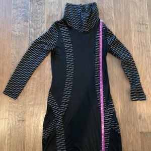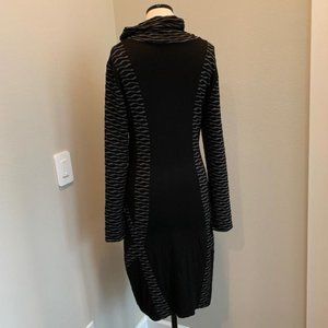 This elegant long sleeve dress features a sophisticated black and gray design, perfect for any occasion. The stylish pattern adds a touch of modern flair.