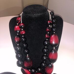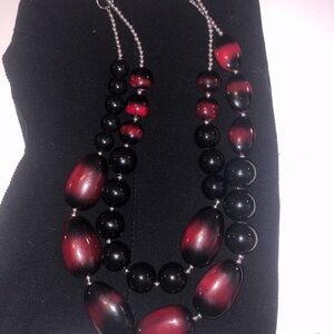 This stunning necklace features bold black and red beads, perfect for adding a touch of elegance to any outfit. Ideal for both casual and formal occasions.