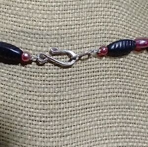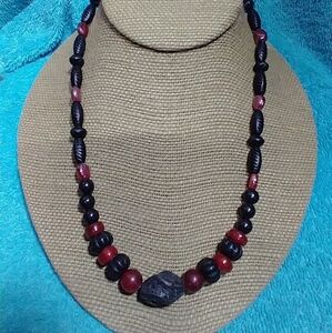 This stunning necklace features a combination of black and red beads, perfect for adding a touch of elegance to any outfit. Ideal for both casual and formal occasions.