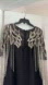 This stunning dress features intricate silver beadwork on a classic black base, perfect for any special occasion.