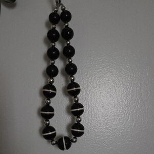 This elegant necklace features striking black and silver beads, perfect for adding a touch of sophistication to any outfit. Ideal for both casual and formal occasions.