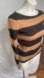 Elevate your style with this elegant black and tan striped sweater. Perfect for any casual occasion.