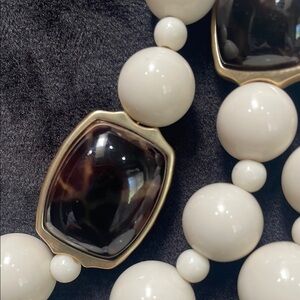 This elegant necklace features striking black and white beads, perfect for adding a touch of sophistication to any outfit. The contrasting colors create a timeless look that is both versatile and stylish.