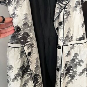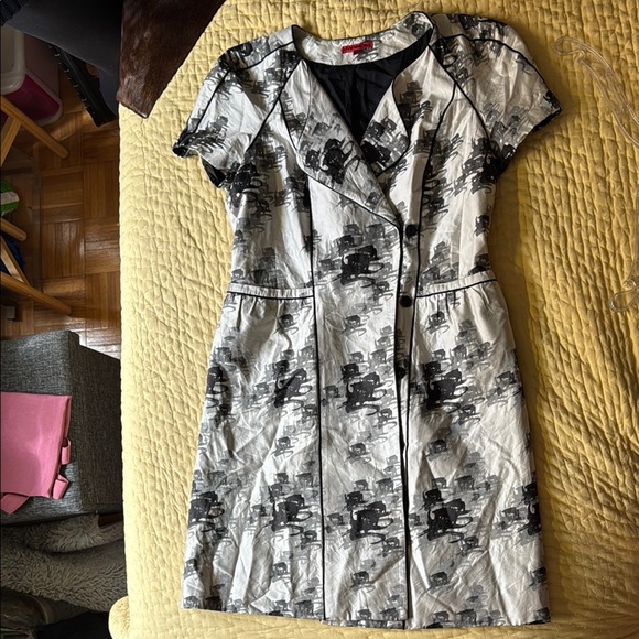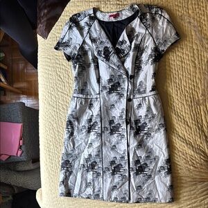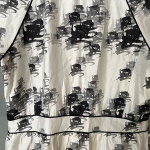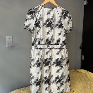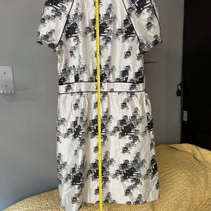 This elegant black and white dress features a stylish pattern, perfect for any occasion. Its classic design ensures a timeless look.