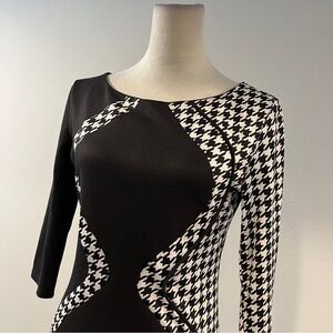 Elegant Black and White Houndstooth knee length 3/4 sleeve Dress size medium