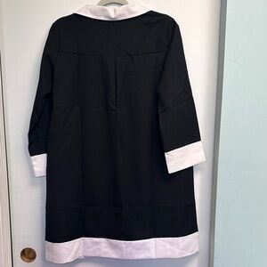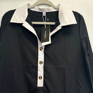 This elegant long sleeve dress features a classic black and white design, perfect for any occasion. The contrasting colors add a touch of sophistication, making it a versatile addition to your wardrobe.
