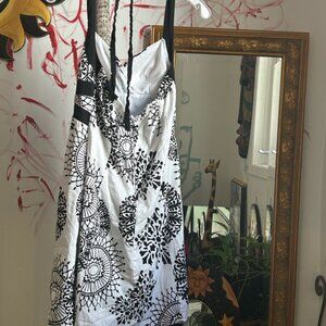 Elegant Black and White Patterned Halter Dress Medium by Majora