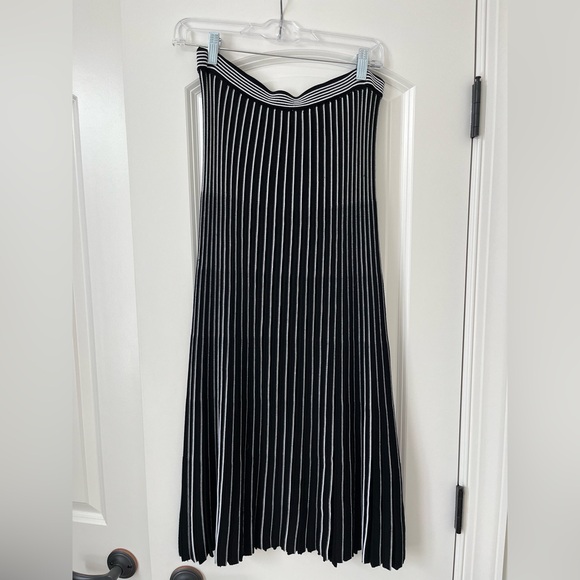 Black and White pleated striped skirt. Knit material with elastic waist. MIDI length. New without tags. From Jarbo size 1 (small)