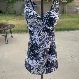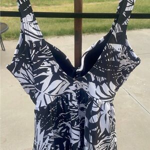 Embrace elegance with this stunning black and white swimsuit top. Perfect for making a stylish statement at the beach or pool.