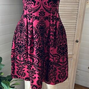 This elegant dress features a striking black and dark pink pattern, perfect for any occasion. Its sophisticated design ensures you stand out with style. Size 6 preloved in perfect condition.