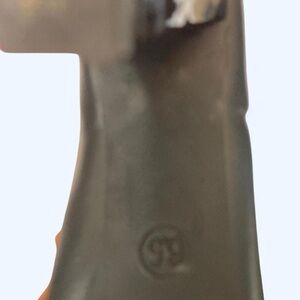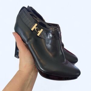 East 5th Black faux leather high heel ankle boots with gold detail and zipper back Excellent condition! 8.5