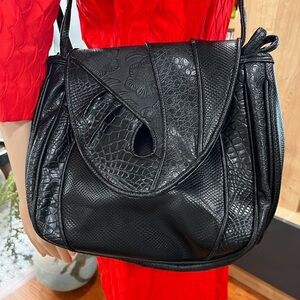 Vintage 90’s embossed/ textured faux vegan leather crossbody hand bag / purse