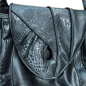Elegant Black faux vegan leather embossed Textured crossbody bag Purse