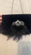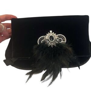 Elegant Black Feathered Rhinestone embellished velvet handbag EUC