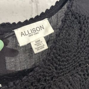 Elegant Black Lace Dress ALLISON New York - Size Medium - Lace Knitted Short Sleeve Dress 💙