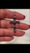 This stunning cross pendant necklace features a striking blue design set in a sleek silver and gold finish. Perfect for adding a touch of elegance to any outfit.