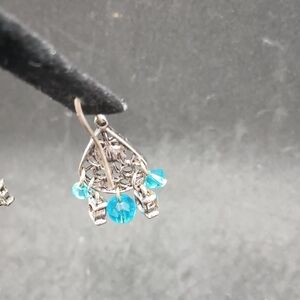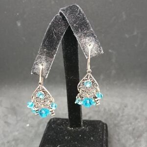 Add a touch of elegance with these stunning blue crystal drop earrings. Perfect for any occasion.