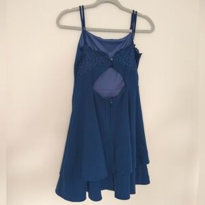 Elegant Blue Double Ruffle Adj. Straps Open Back Mini Dress by Altar'd State Med