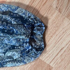 This stunning blue sundress by Joie is perfect for a wedding guest or cocktail event. It features a v-neckline, 3/4 bishop sleeves, and a notched collar, all crafted in a flowy high low design. The dress's elegant silhouette is enhanced by its defined waistline, creating a romantic and sophisticated look.